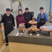About noon, I go down to the atrium for lunch at the cafe. Usually, I’m joined by my son Ben and/or my brother Michael. Every week, the conversation starts with “Whose turn is it to pay? No, it’s my turn. You don’t remember, you paid last week.” There are delicious vegetarian options: grilled cheese sandwiches, vegetarian chilli, and vegetable soup. This, in addition to pastries, soda. juices, specialty coffees, hot chocolate and tea. The latest addition to their offerings is challah that they bake themselves and is available on Friday mornings.